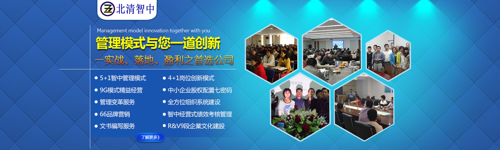 廣東智中企業(yè)管理咨詢(xún)有限公司是經(jīng)國(guó)家工商部門(mén)備案許可的一家企業(yè)管理咨詢(xún)服務(wù)公司(備案號(hào):06152392-1),是廣東唯一創(chuàng)"5+1"智中管理模式、組織系統(tǒng)建設(shè)、4+1崗位創(chuàng)新模式、中國(guó)式績(jī)效考核、企業(yè)務(wù)實(shí)診斷改善、內(nèi)部培訓(xùn)為主體的顧問(wèn)機(jī)構(gòu),本著為個(gè)類(lèi)企業(yè)管理理論研究和管理實(shí)踐探索的專(zhuān)業(yè)機(jī)構(gòu)。公司融合西方文化的管理理念并結(jié)合中國(guó)國(guó)情與企業(yè)特殊的狀況與特點(diǎn),匯聚多名曾在美資、日資、臺(tái)資、港資、民營(yíng)企業(yè)工作多年的高層管理精英及有著在多行業(yè)從事顧問(wèn)經(jīng)驗(yàn)的咨詢(xún)師,研究一套簡(jiǎn)單的企業(yè)管理理論與實(shí)踐結(jié)合的贏(yíng)利管理模式,幫助多家企業(yè)進(jìn)行管理并實(shí)踐運(yùn)用,均取得了卓越的業(yè)績(jī)...